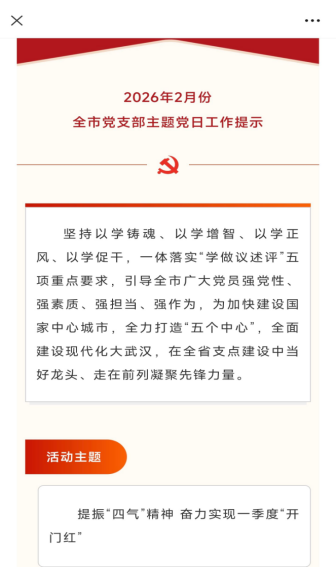 此次线上主题党日,既完成规定学习任务,又贴合学生特点推动学用结合,进一步筑牢思想根基、凝聚奋进合力。下一步,学院学生党支部将持续深化理论学习、丰富活动形式,引领青年学子将个人理想融入国家发展大局,以饱满热情与务实作风冲刺一季度、奋战新全年,为谱写强国建设、民族复兴的武汉篇章贡献青春智慧与力量。