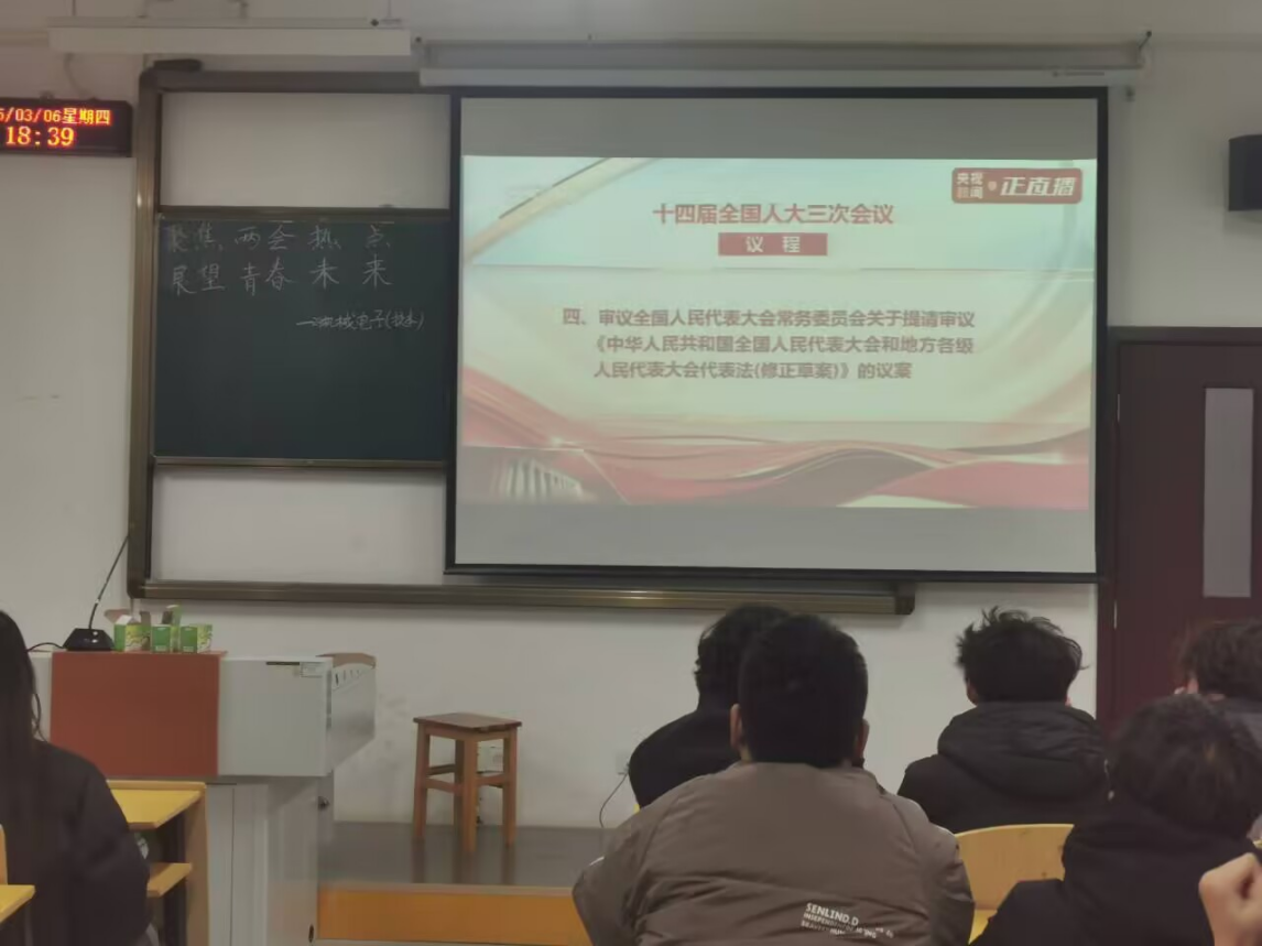 为深入学习贯彻两会精神,引导学生关注国家大事,增强社会责任感,3月6日晚自习时间,智检学院组织大一学生集中观看了第十四届全国人大三次会议开幕式。此次活动旨在让学生们第一时间了解国家发展动态,感受时代脉搏,激发爱国热情和奋斗精神。