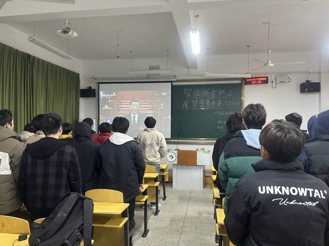 观看后,同学们积极发言,分享自己的观看感受和体会。2024级新能源汽车技术5班班长朱照阳说道:“听了政府工作报告,我深刻感受到国家对科技创新的高度重视。作为一名新能源汽车专业的学生,我深感责任重大。在今后的学习中,我将更加努力,掌握扎实的专业知识,为将来投身国家制造业贡献自己的一份力量。”辅导员李林蔚也参与讨论,鼓励学生:“新时代大学生肩负着时代赋予的使命,不能只着眼于个人发展,更要心系社会民生。大家应借助此次学习契机,把两会精神融入日常学习,为促进社会公平正义、改善民生福祉贡献自己的力量”