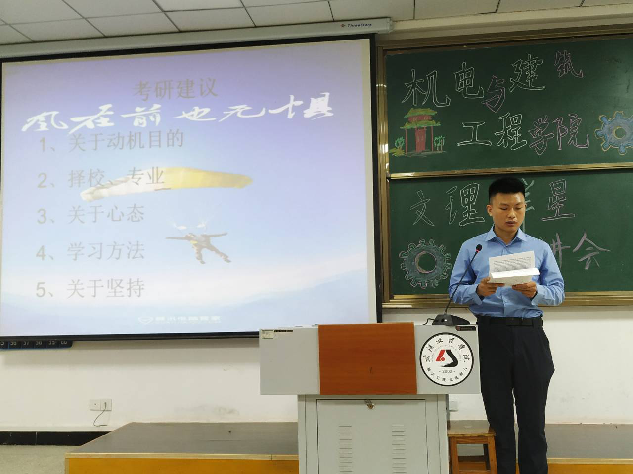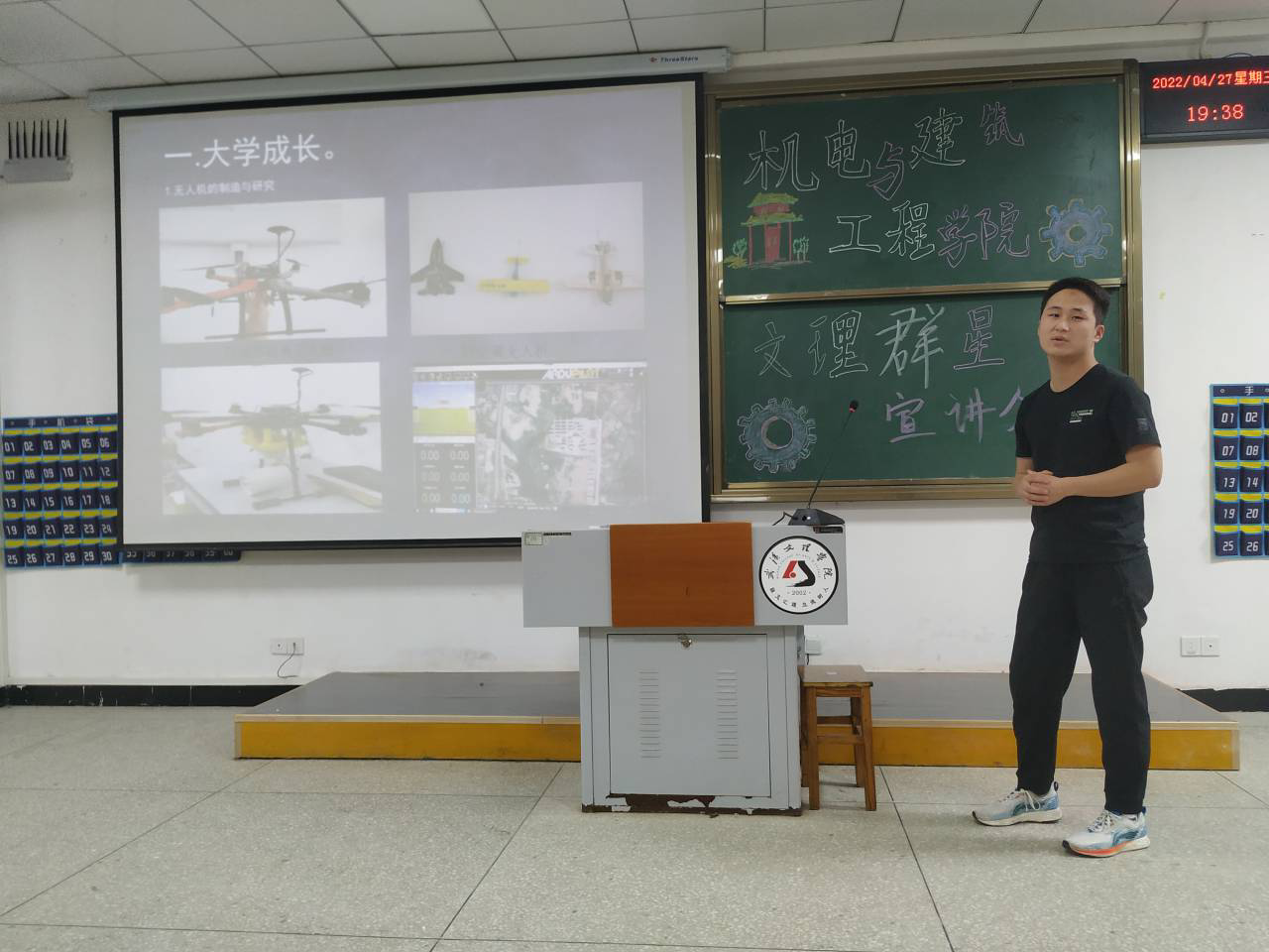授学业之经验,承学习之精神。4月27日晚18: 30,机电与建筑工程学院在4-121开展了“文理群星”宣讲会。参与此次宣讲会的老师有机建学院党总支书记蔡锋利,辅导员王茜、张雨晴。此次宣讲会邀请到了闫梦奇 、刘明鑫、 张星雨、张博厚,、叶寅、颜超六位优秀学生代表。他们向机建学子们从不同方面宣讲了自己的大学生活,为大一新生分享了丰富的经验。
