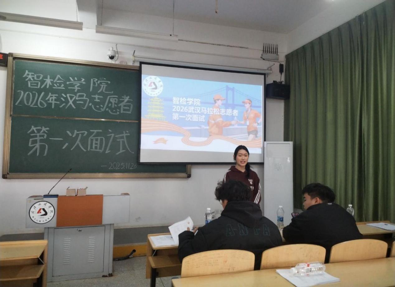 据悉,最终入选名单将结合面试表现与综合素养择优确定并公示。后续,学院将持续做好志愿者岗前培训与保障工作,确保同学们以专业、规范的服务,在汉马赛道上展现智检学子的青春风采,成为连接赛事与跑者的“温暖桥梁”。