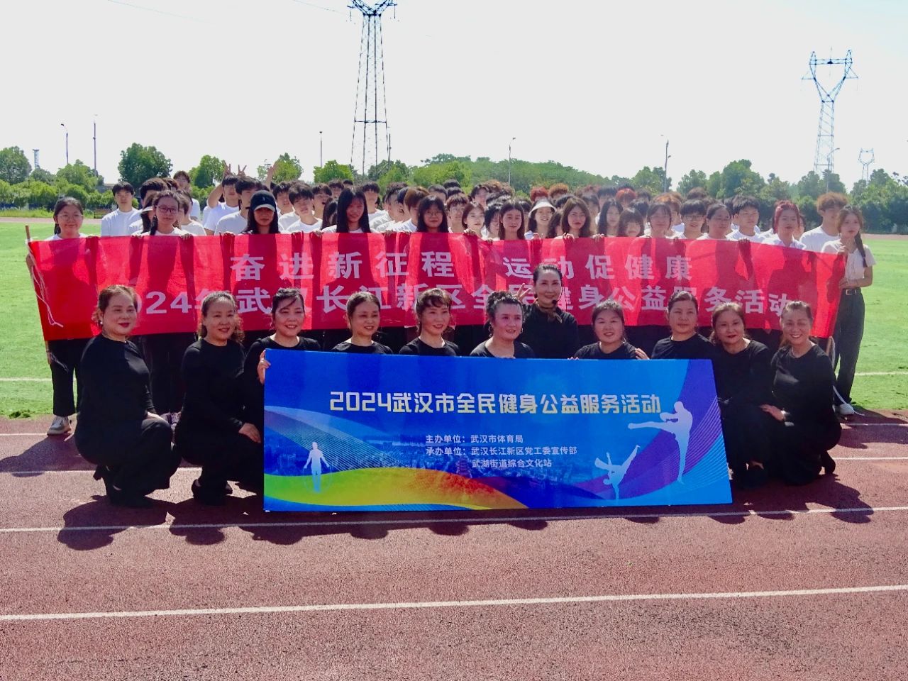 4.5月28日,我院120名学生方阵和30余名志愿者参加2024年武汉市长江新区全民健身公益服务活动。