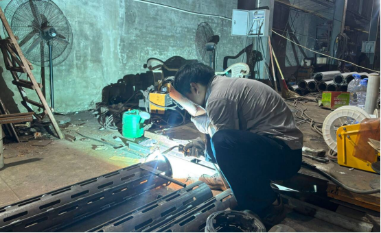 焊接工位更是一场心理战。第一次拿起焊枪时,申秉轩的手不住颤抖,焊缝像蚯蚓般歪歪扭扭。带教师傅鼓励他:别怕烧坏材料,每一道丑焊缝都是你的老师。他利用午休时间反复练习,甚至用废料在车间角落搭起练习台。现在,他不仅能稳定焊出笔直的焊缝,还能又快又好的完成既定任务。