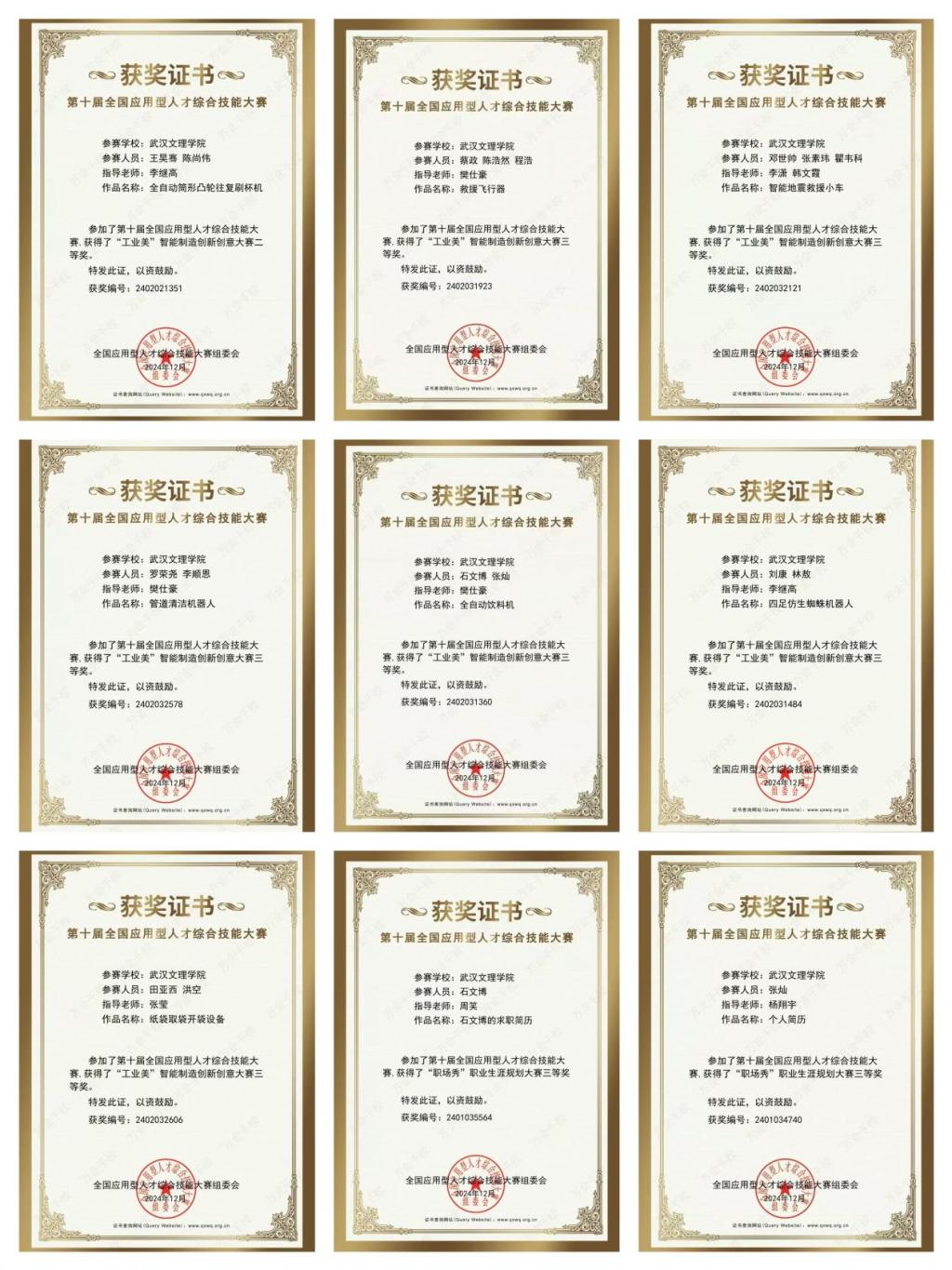 最终,智检学子在第十届全国应用型人才综合技能大赛中脱颖而出,斩获了二等奖1项,三等奖8项的突出成绩。这些奖项的获得,不仅是对参赛学子个人能力的肯定,更是对智检学院教育教学质量的认可。